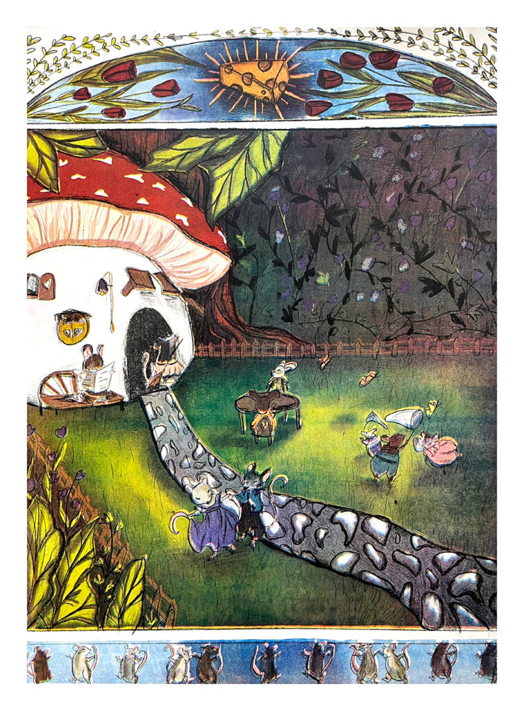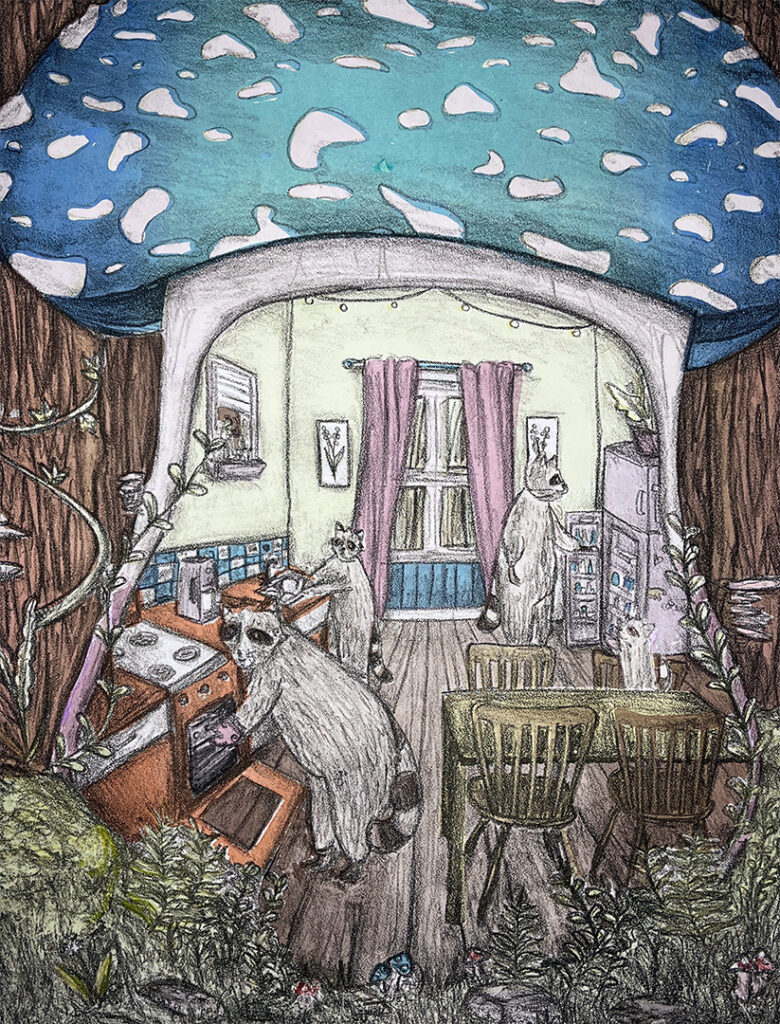 I am a printmaker and graphic designer based in Kinston, NC. I work primarily in lithography and screen printing, drawing inspiration from personal experiences, mental health, and major life transitions. My art reflects my journey with anxiety and life, using anthropomorphic animal characters and a nostalgic, storybook style to tell these stories. In my free time, I enjoy crocheting, nature walks, and crafting! I work at Magic Mile Screen Printing as a screen printer and graphic designer. I graduated from ECU with a Bachelor’s in Fine Arts, Printmaking Concentration in 2025. I fell in love with screen printing and lithography while going to school, and I enjoy sharing the craft with others.